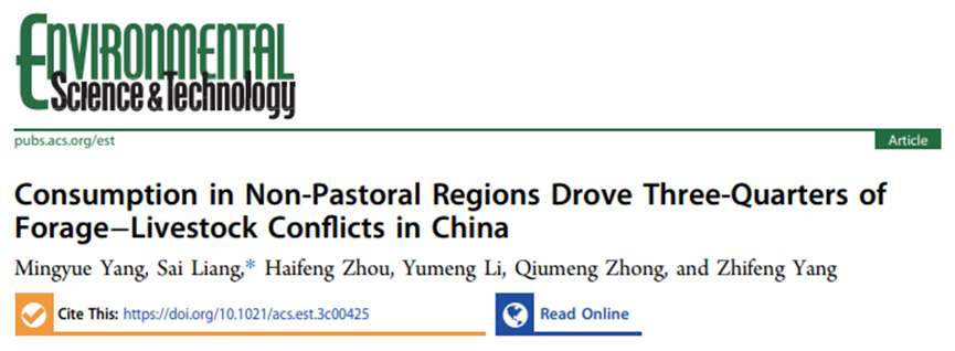 梁赛教授在环境科学领域顶级期刊《Environmental Science & Technology》发表题为“Consumption in non-pastoral regions drove three-quarters of forage-livestock conflict in China”的研究论文。梁赛教授为论文通讯作者,团队成员杨明岳为论文第一作者。