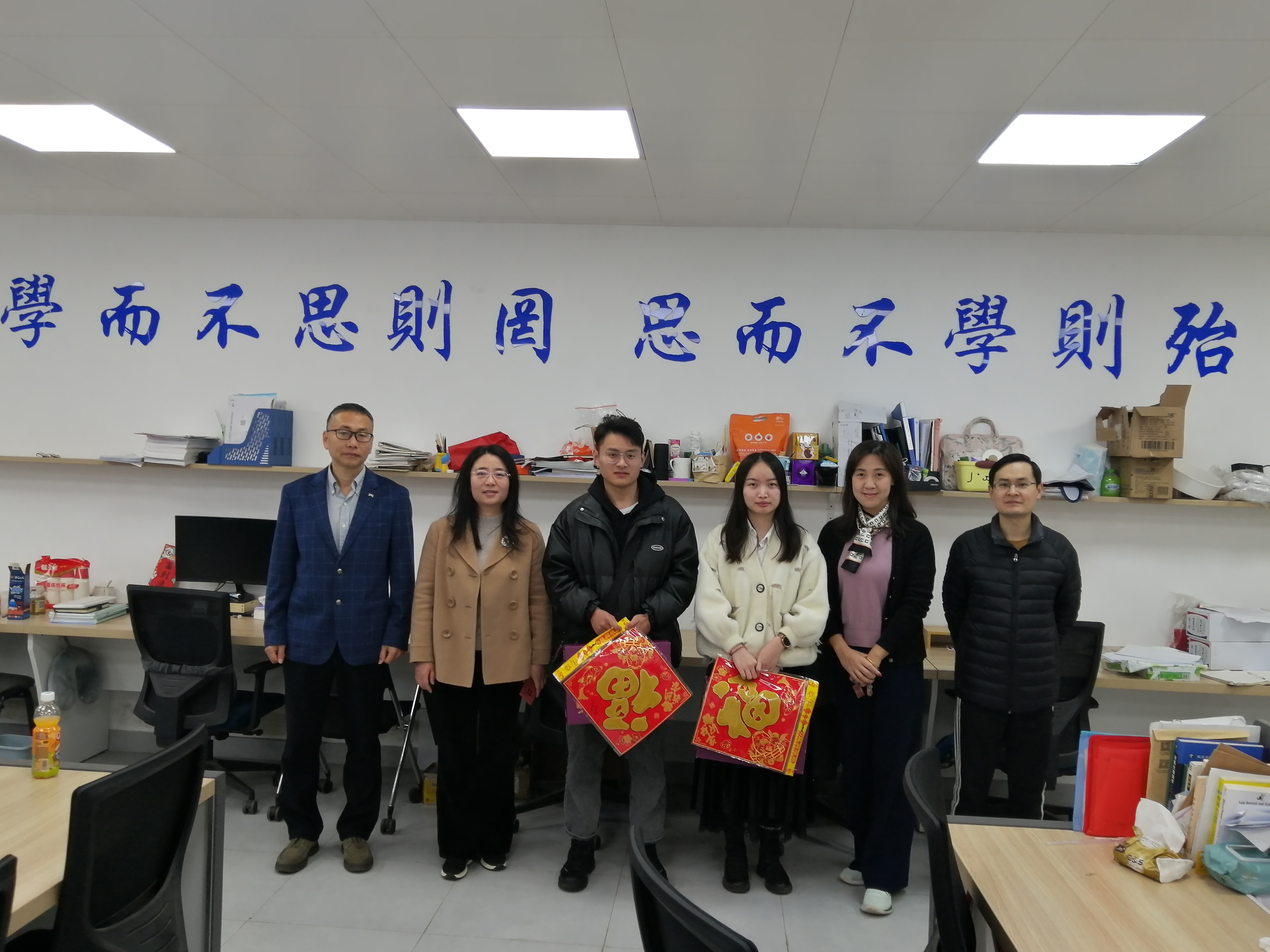 今年寒假,由于疫情防控、个人学习和科研工作安排等原因,角球比分直播 有四名研究生在学校过春节。学院领导在学院党政办主任的陪同下到研究生工作室看望了留校的研究生,送上了新年礼包和最美好的新春祝福,并仔细询问他们的假期安排。在得知留校研究生都有着充实有益的计划后,院长谭倩教授嘱咐他们要劳逸结合,常与家人联系,要向家人朋友们报个平安,送去祝福。党委书记曾志英叮嘱同学们疫情防控不能掉以轻心,要注意人身和财产安全,在学校过个平安吉祥年。
