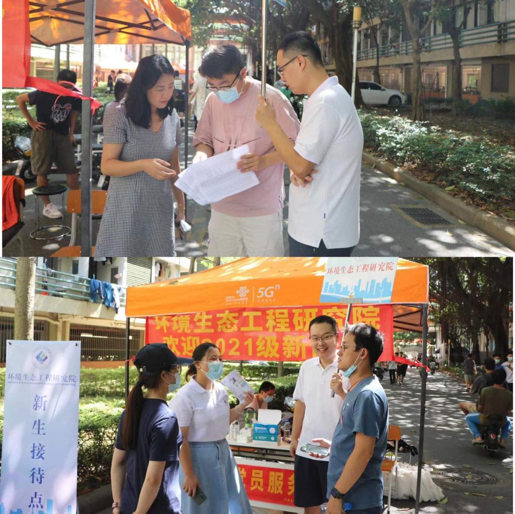 2021年8月28日一大早,研究院迎接新生工作拉开帷幕。广工东、西区校园内,环境生态工程研究院的迎新点格外亮眼。迎新点的党员们,教授们和迎新使者们都心怀喜悦,各司其职,时刻关注报到动态,及时应对新生入校和行李搬运等问题。随后,曾书记第一时间带队进入新生宿舍与新同学们亲切交流,了解大家的住宿环境和入学感受, 鼓励大家尽快融入研究院。