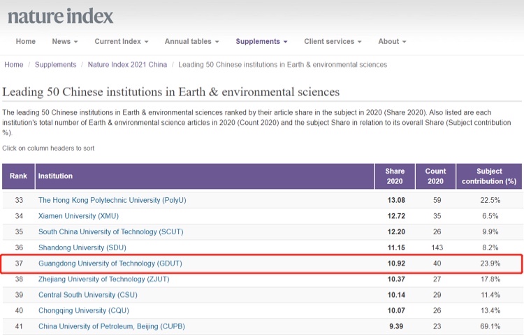 根据2020年的文章贡献份额,《自然》增刊列出中国50强地球与环境科学科研机构名单,我校地球与环境科学学科入选了中国50强地球与环境科学科研机构名单,位列全国第37名。