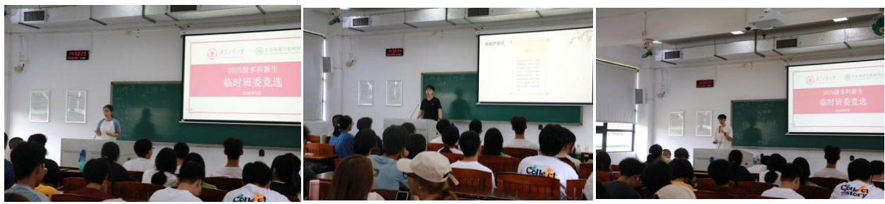 大会上,洪念老师围绕入学适应、学业规划、班级建设等主题与同学们深入交流,并现场解答了大家关于时间管理、宿舍相处、升学政策等方面的具体问题,鼓励每位同学在新学期伊始就树立“安全第一、主动学习、合作共赢”的意识,并寄语大家“立规矩、明方向、善自律、重安全”,共同营造温暖有序、积极向上的班级氛围。竞选临时班委环节,同学们踊跃上台,结合自身特长与经历,畅谈对班级工作的设想与承诺,展现出服务集体、共建良好班风的意愿与热情。