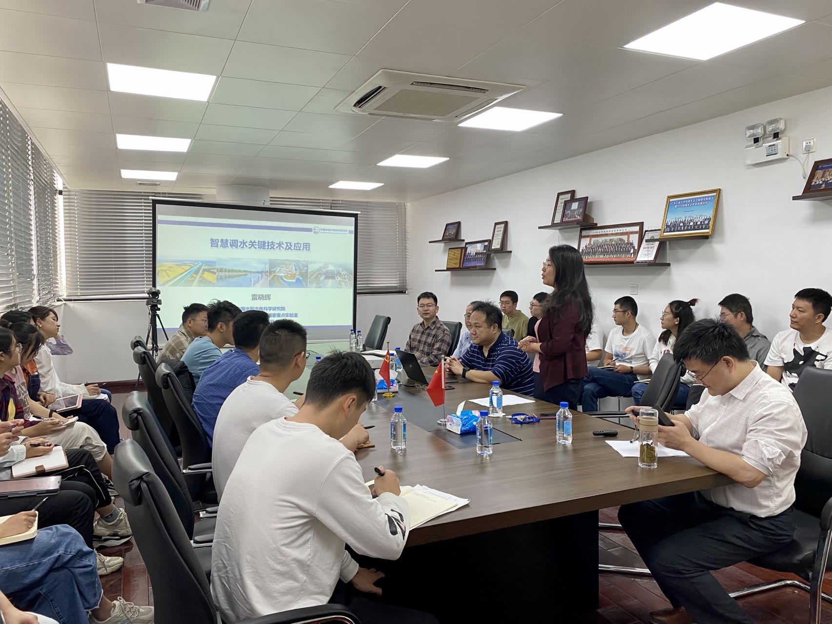 会上,谭倩代表研究院对雷晓辉表示热烈欢迎。雷晓辉首先从南水北调工程、胶东调水工程等大型调水工程综合调度的实际需求出发,分析了我国调水工程调度管理的现状和问题;随后从智慧调水的感知、控制和决策等关键环节入手,剖析了需要突破的具体工程问题及其背后的科学问题;最后介绍了水系统多过程预测、水力控制、水量调度等理论和方法,及其在多个大型调水工程的实际应用。