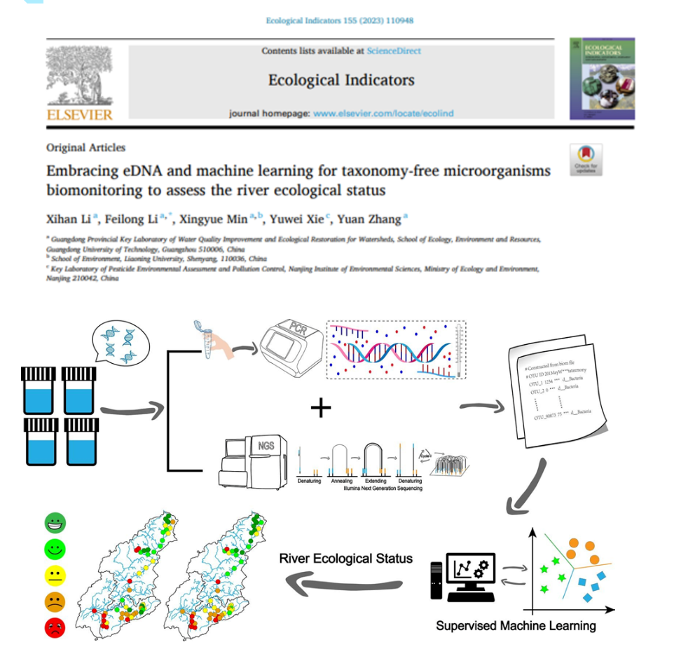 (6) Li, X., Li, F*., Min, X., Xie, Y., & Zhang, Y. (2023). Embracing eDNA and machine learning for taxonomy-free microorganisms biomonitoring to assess the river ecological status. Ecological Indicators, 155, 110948.