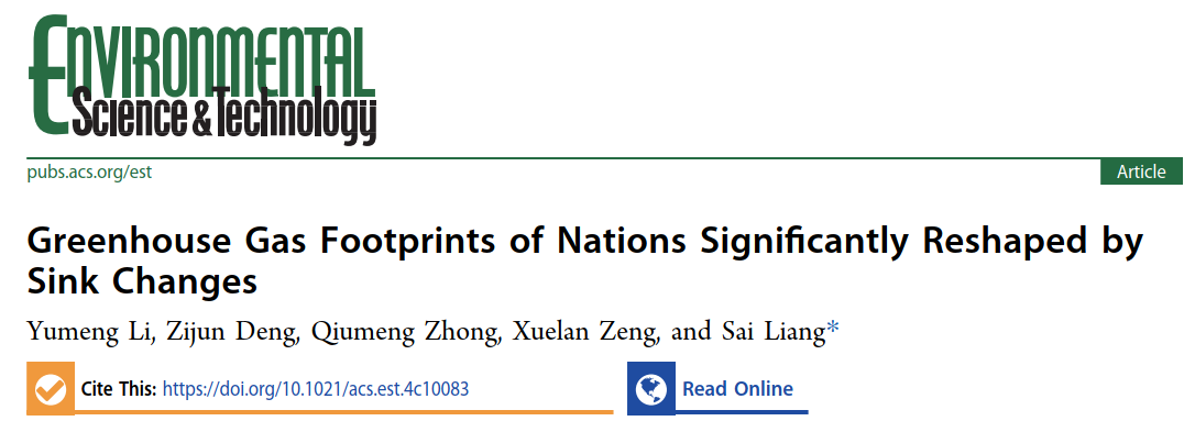 梁赛教授课题组在Environmental Science & Technology发表题为“Greenhouse Gas Footprints of Nations Significantly Reshaped by Sink Changes”的内封面论文。角球比分直播