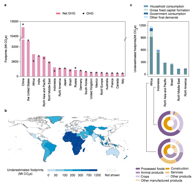 图2.足迹被低估地区的产品层面温室气体净足迹和温室气体足迹