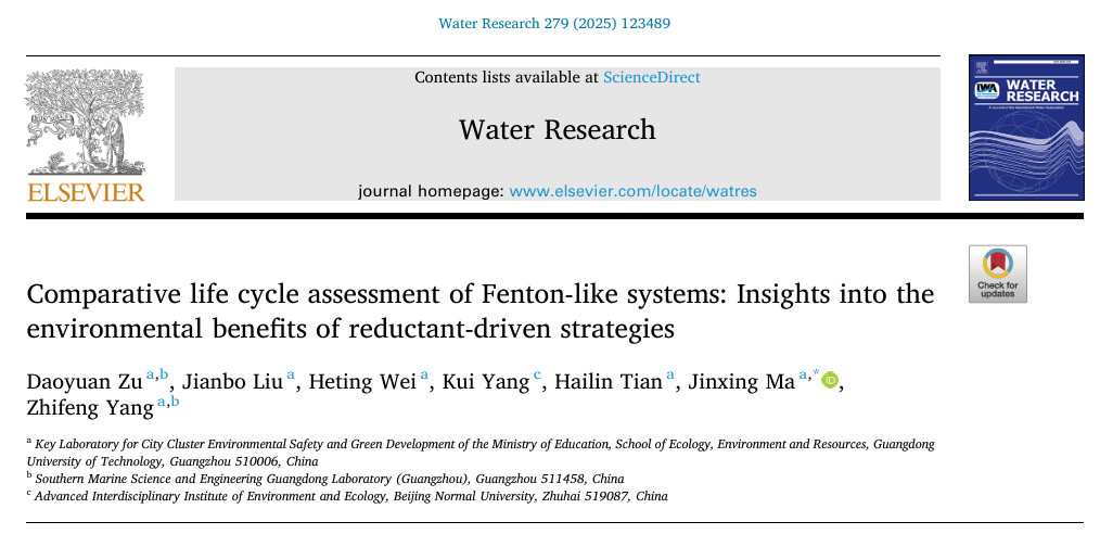 马金星教授课题组在环境领域知名学术期刊Water Research上发表了题为“Comparativelifecycleassessment of Fenton-likesystems:Insights intotheenvironmentalbenefits ofreductant-drivenstrategies”的研究论文。