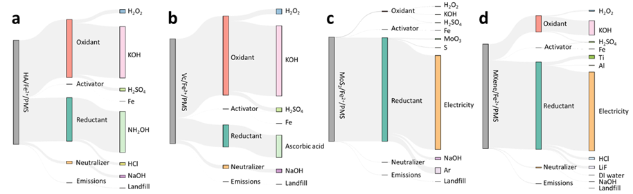 图3:还原剂驱动类芬顿体系的累计能源需求的桑基图。
