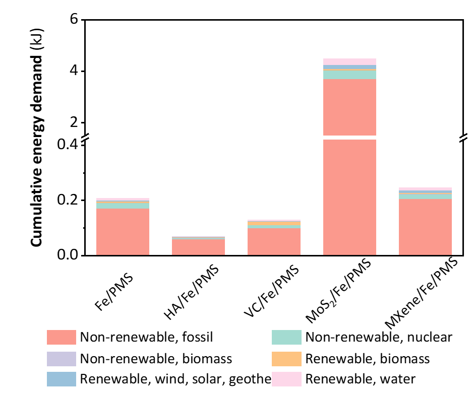 图2:还原剂驱动类芬顿体系的累计能源需求。
