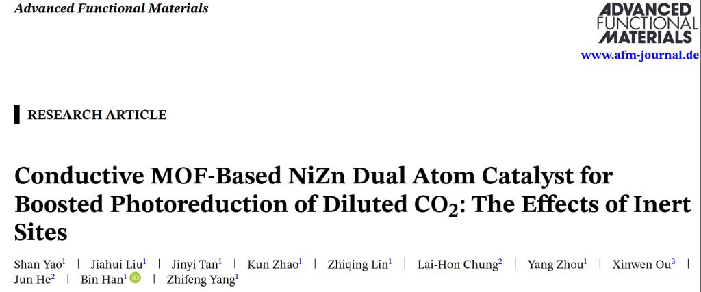 杨志峰院士团队韩彬教授课题组在人为源二氧化碳转化研究中取得重要进展,研究成果以“Conductive MOF-Based NiZn Dual Atom Catalyst for Boosted Photoreduction of Diluted CO2: The Effects of Inert Sites”为题发表于《Advanced Functional Materials》。韩彬教授为论文通讯作者,足球角球即时比分