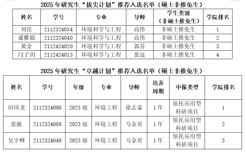 根据《关于开展2025年研究生拔尖创新型人才培养对象选拔工作的通知》、《关于开展2025年研究生卓越应用型人才培养对象选拔工作的通知》等文件精神,经专家评审、学院审核,现将角球比分直播 2025年度研究生“拔尖计划”“卓越计划”推荐入选名单予以公示。