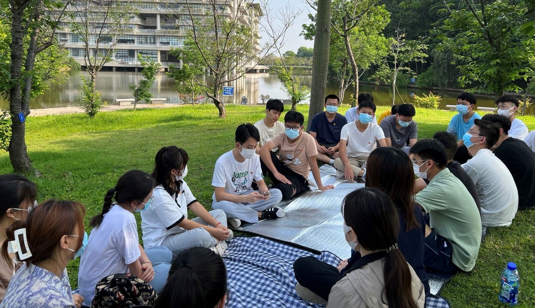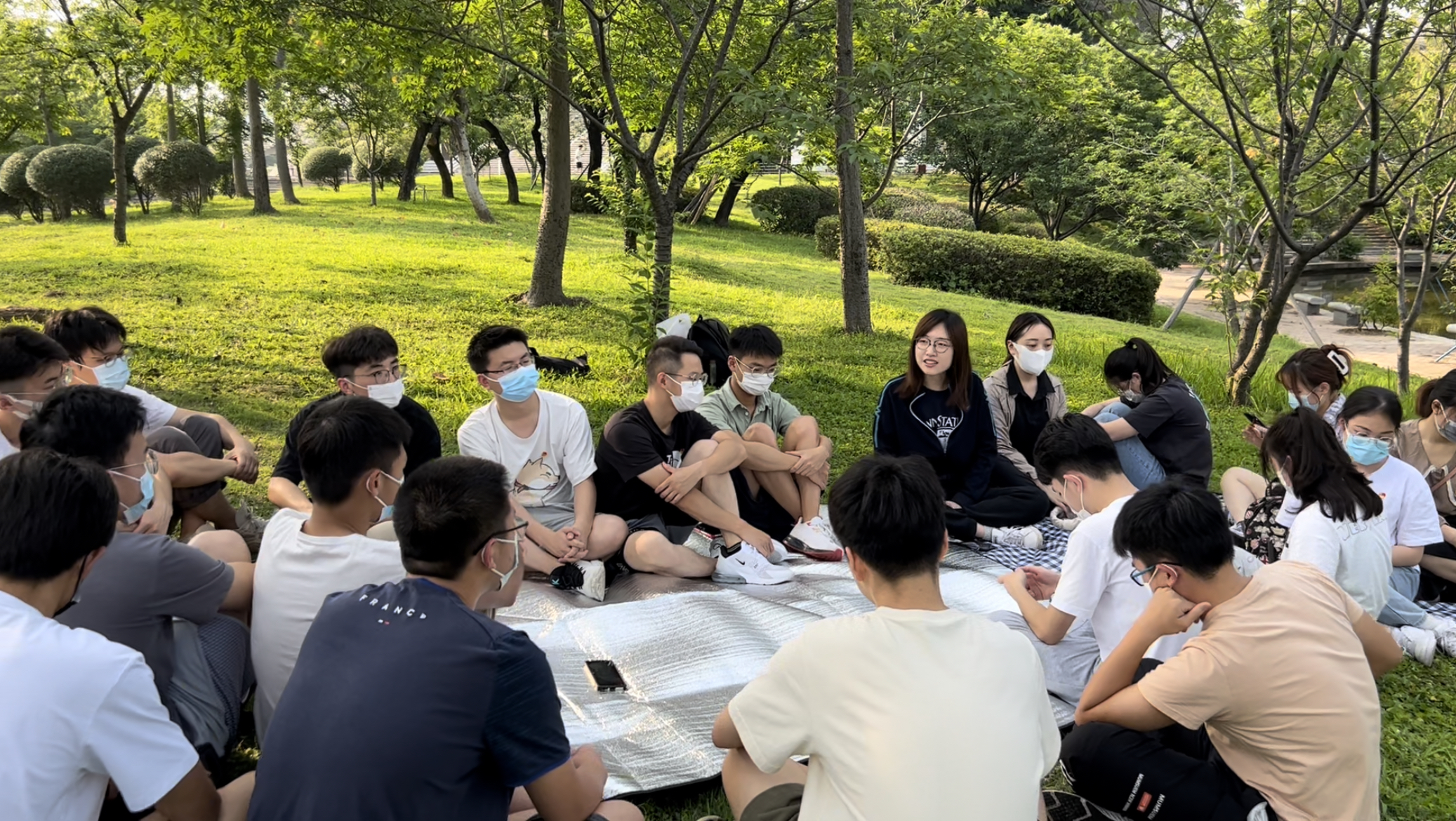 为迎接党的二十大胜利召开,庆祝中国共产主义青年团成立100周年,引领青年党员和共青团员继承和发扬五四精神,5月4日下午,足球角球即时比分 2021级专硕党支部党员携留校本科生团员于教学区湖畔开展“弘扬五四精神,凝聚青春力量”主题“湖畔思享会”活动。活动由党支部书记章莹老师主持。