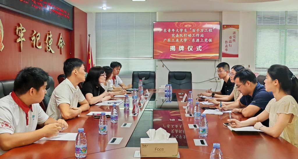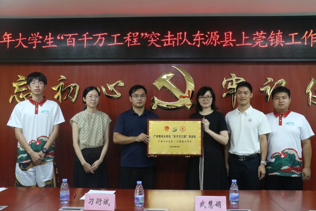 为深入推进广东青年大学生百千万工程”突击队工作,助力校地合作,7月14日至16日,角球比分直播 师生赴河源市东源县上莞镇调研交流,同时举行“百千万工程”突击队工作站揭牌仪式。学院党委书记武慧娟,学院团委书记刁衍斌,辅导员欧少珍,团东源县委副书记李铸,上莞镇副镇长兼团委书记朱瑾璟,赴上莞镇“碧水清乡”服务队全体成员等参加活动。