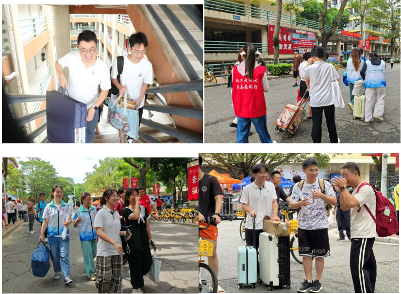 志愿服务,温暖人心。迎新使者和志愿者们通力合作,提前对接新生,精准掌握每位新生的报到时间,及时到达约定地点为新生、家长提供行李搬运、路线指引、信息咨询等全方位服务,用热情、耐心和实实在在的行动,让初来乍到的新生感受到了家一般的温暖。