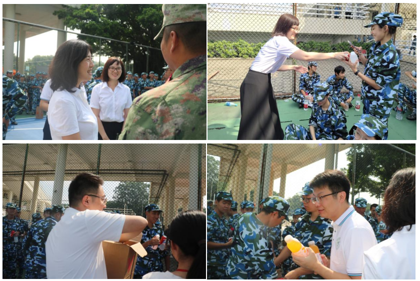 在慰问现场,学院领导老师一行代表学院向承训教官和同学们送上解暑慰问品,对教官们表示衷心感谢,鼓励新生继续发扬吃苦耐劳、脚踏实地的精神,为将来的大学生活打下坚实的基础。