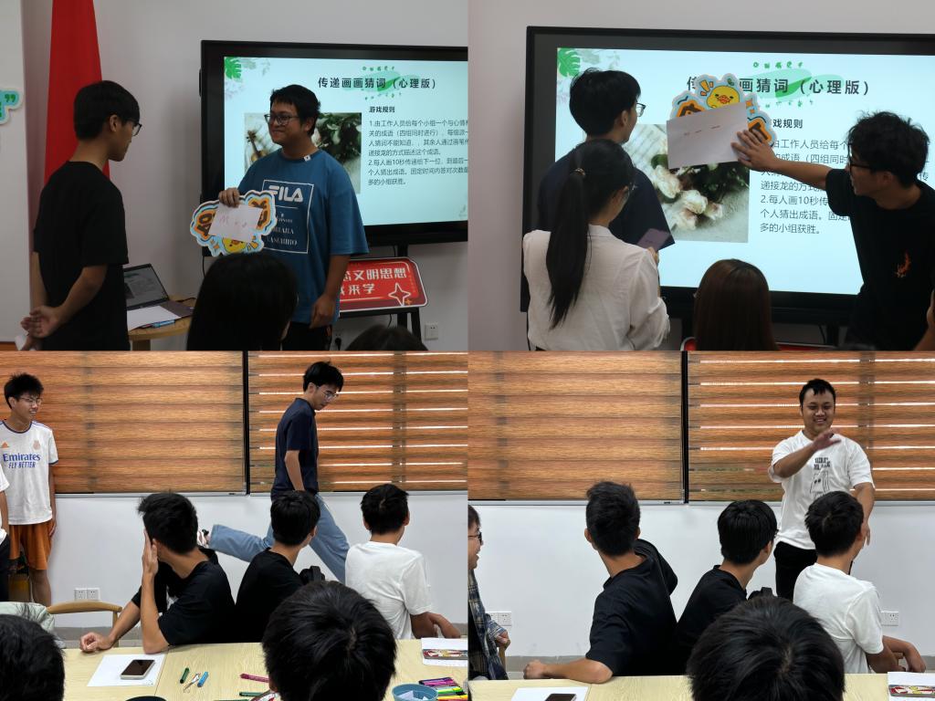 活动期间,通过设计“超级大头贴”、“压力纸飞机”、“传递画画猜词”等环节,引导学生正确组织语言、文明表达,规范言行,促进合作交流。学生们在游戏中畅谈自己的学习情况、近期压力及对未来的规划,同时对自身日常的言行举止进行审视,互相分享、互相学习有效的学习方法、礼仪技巧与应变能力等。特别是“动作接龙”环节,通过鼓励学生进行模仿和创造,从而释放自我,培养团队精神,让文明言行在轻松的氛围下树德正行,共筑优良学风。