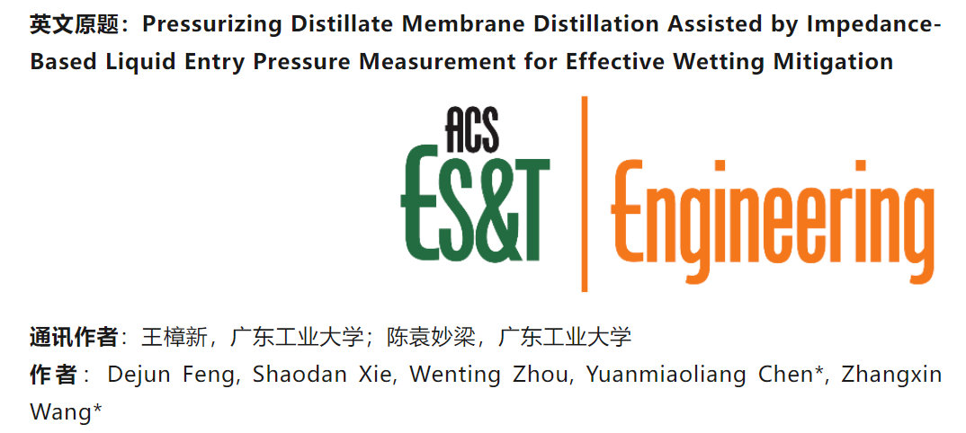 杨志峰院士团队王樟新教授课题组提出了一种新型的产水加压膜蒸馏操作模式(PDMD),通过产水侧的压力,有效地缓解了膜润湿的问题。此外,团队还提出了一种基于阻抗的液体进入压力测量方法,保障了该操作模式的顺利运行。该论文发表在ACS ES&T Engineering上,角球比分直播