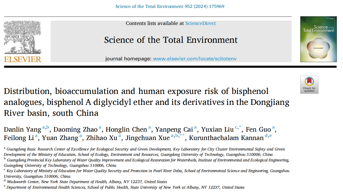 角球比分直播 杨志峰院士团队薛靖川教授课题组在Science of the Total Environment发表题为Distribution, bioaccumulation and human exposure risk of bisphenol analogues, bisphenol A diglycidyl ether and its derivatives in the Dongjiang River basin, south China的最新研究成果。