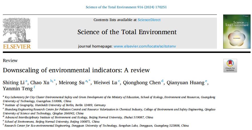 杨志峰院士团队苏美蓉教授课题组在Science ofthe TotalEnvironment发表最新成果:Downscaling of environmental indicators: A review。学院博士生李诗婷为第一作者。