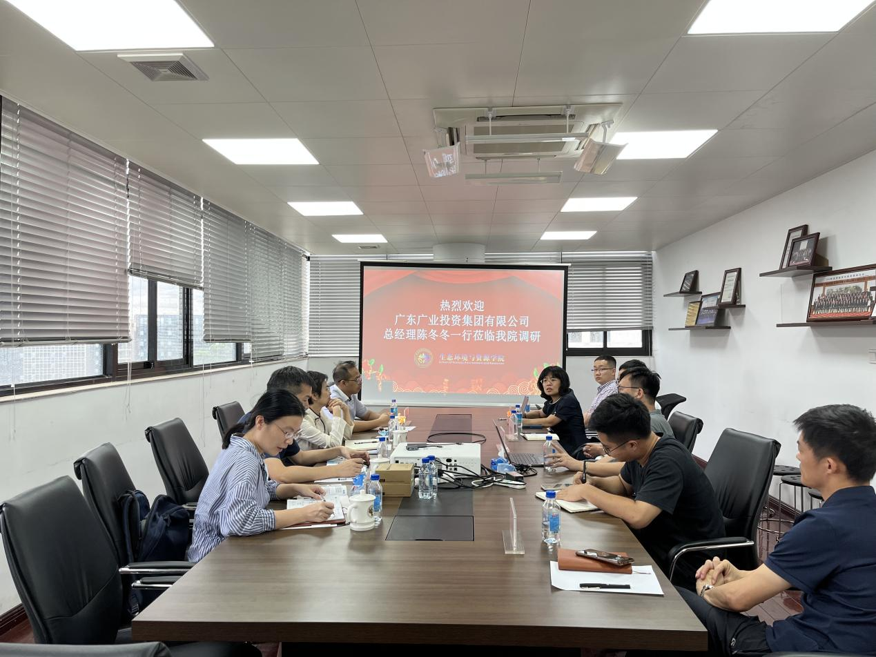 2022年6月30日下午,广东广业投资集团有限公司总经理陈冬冬、副总工程师容毅浜、陈亮广博士和龙艳秋博士莅临角球比分直播 展开调研。角球比分直播 副院长何頔、曾雪兰教授、李贤辉教授、张众副教授以及团委书记刁衍斌出席了此次调研座谈会。