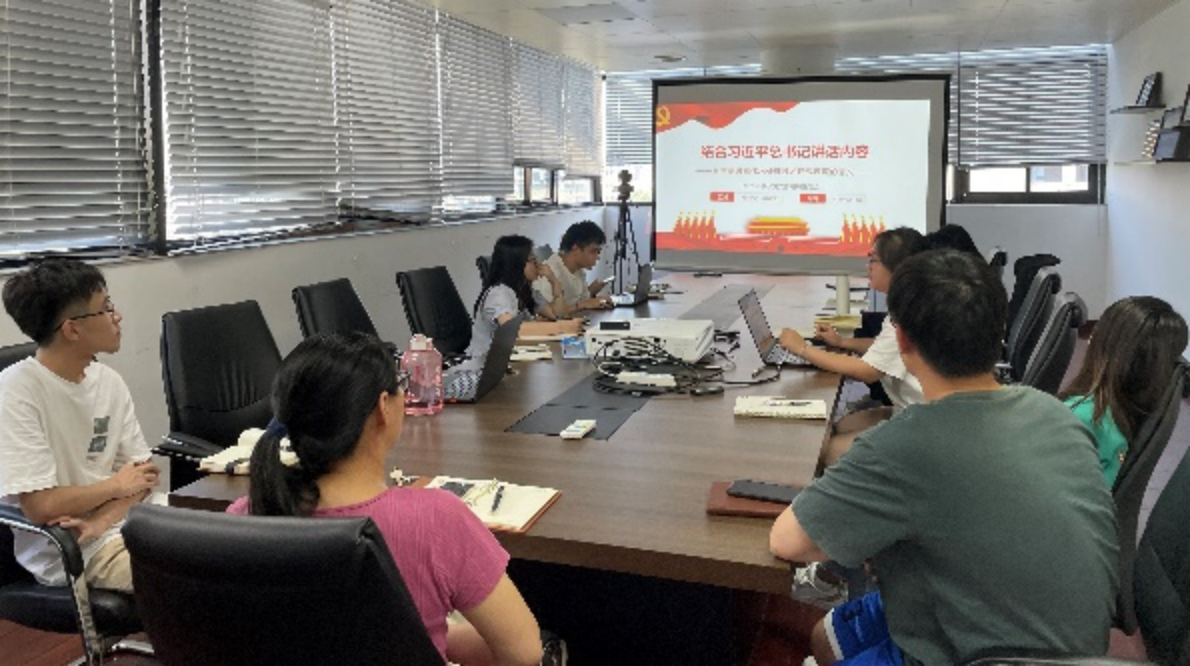 全体党员首先重温入党誓词,学生党员代表分享学习习近平生态文明思想的心得体会,阐述课题的研究意义和面向的国家重大战略需求。组织委员李淑而摘录习近平总书记“节水优先、空间均衡、系统治理、两手发力”的16字治水新思路,探讨了研究课题“高级氧化水处理技术”与治水思路的关联性,表示节水净污两手抓,发展治理技术才能实现治理。党支部副书记陆华森结合习近平总书记在考察胜利油田时提出的“能源的饭碗必须端在自己手里”,联系课题探讨粤港澳大湾区能源供需端平衡的重要性,表示资源应取之有度、用之有节。