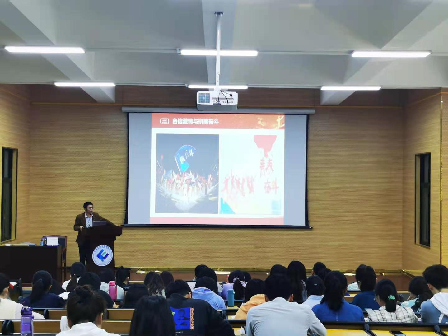 张中鹏副教授以“在党史学习不断汲取前进的力量”为题,以党的百年光辉历程为主线,围绕“五四运动的发展史”、“马克思主义学说在中国的传播”、“中共一大的召开”三个主题,为师生们生动讲述了我党的历史故事,解读共产党人浴血荣光、劈波斩浪、苦难辉煌的奋斗历程。