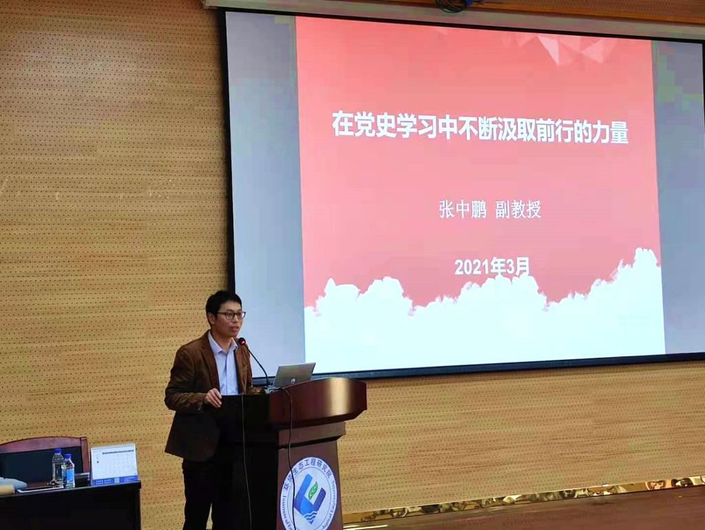 为切实抓好师生党史学习教育,激励青年传承红色基因,3月26日下午,环境生态工程研究院直属党支部邀请马克思主义学院张中鹏副教授在科技南楼一楼多功能会议室为研究院全体师生党员和入党积极分子讲授党课。研究院直属党支部曾志英副书记主持会议。