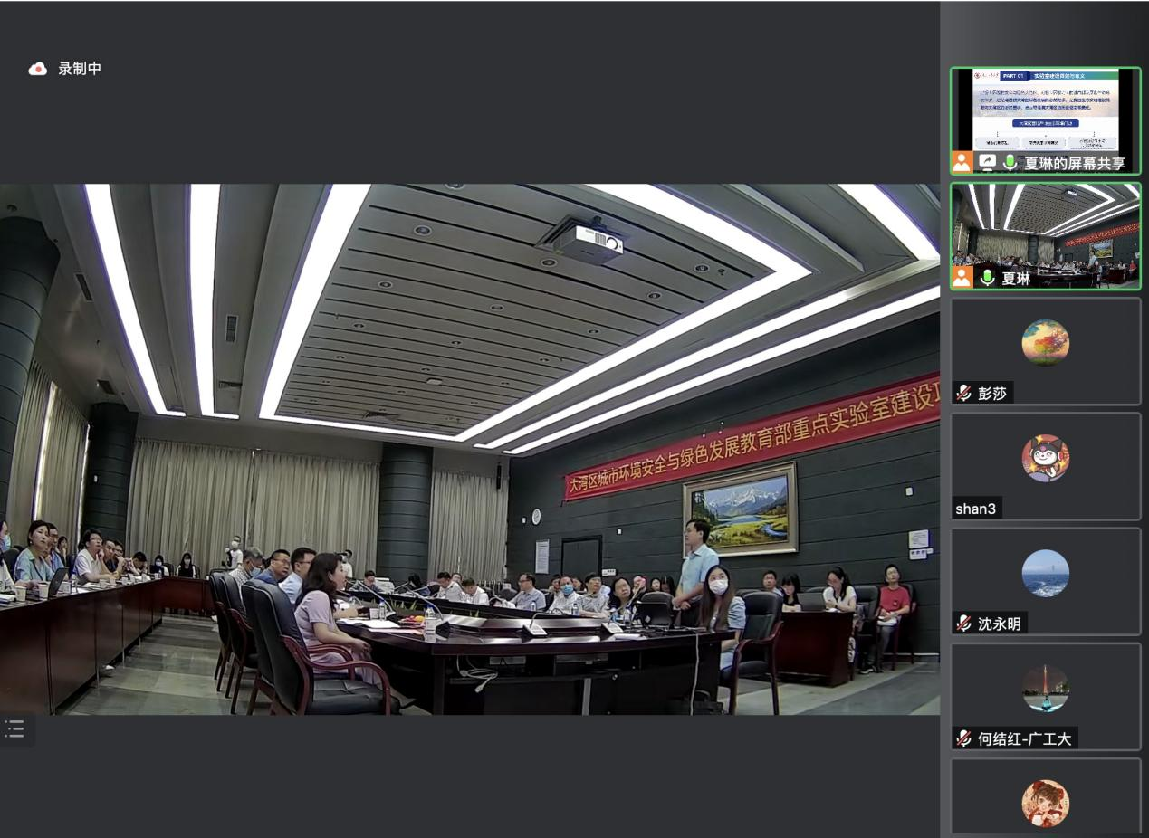 教育部重点实验室执行主任梁赛教授从实验室基本信息、建设目的与意义、实验室建设任务完成情况、实验室研究方向和研究工作进展、实验室硬件建设、学科建设、人才培养与学术交流、实验室组织结构与管理模式、实验室队伍建设和实验室中长期工作设想等八个方面进行实验室建设工作汇报。教育部重点实验室成员周雅教授、江进教授、曾雪兰教授分别作题为《新兴产业环境系统分析》、《绿色低碳微生物脱氮水处理技术研发》、《碳达峰与碳中和战略研究与咨询应用汇报》的学术报告。